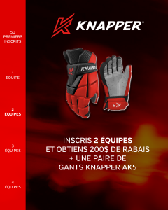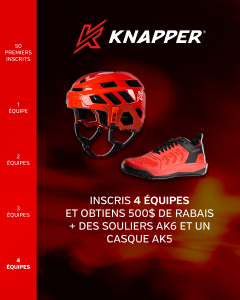 - Inscrit 2 équipes et obtient 200$ de rabais + 1 paire de gant Knapper AK5