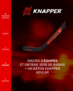 - Inscrit 3 équipes et obtient 350$ de rabais + 1 bâton Knapper Kevlar