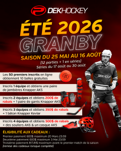 Chaque champions : 1er au classement en saison & gagnant des séries, seront les heureux représentants du ProGym DekHockey Granby au prestigieux Championnat Provincial HockeyQC se déroulant à Charlevoix et diffusé sur les ondes de RDS.
